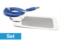 Stainless steel (INOX) plate electrode with a 3-meter connecting cable, suitable for medical or physiotherapy applications requiring electrical stimulation or monitoring.