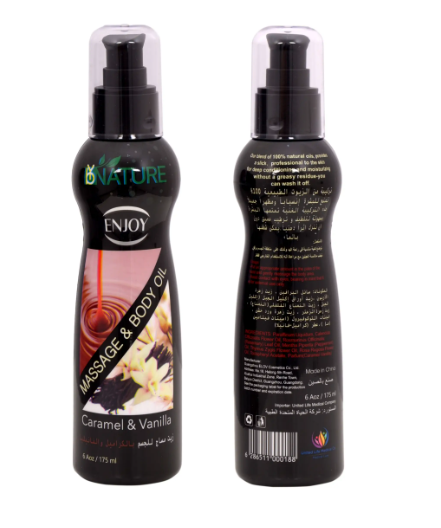 - The Enjoy Massage Body Oil, a 100% natural blend of oils that offers a multitude of benefits for your skin,This rich formula is easily absorbed, providing deep nourishment and hydration without leaving a greasy residue.