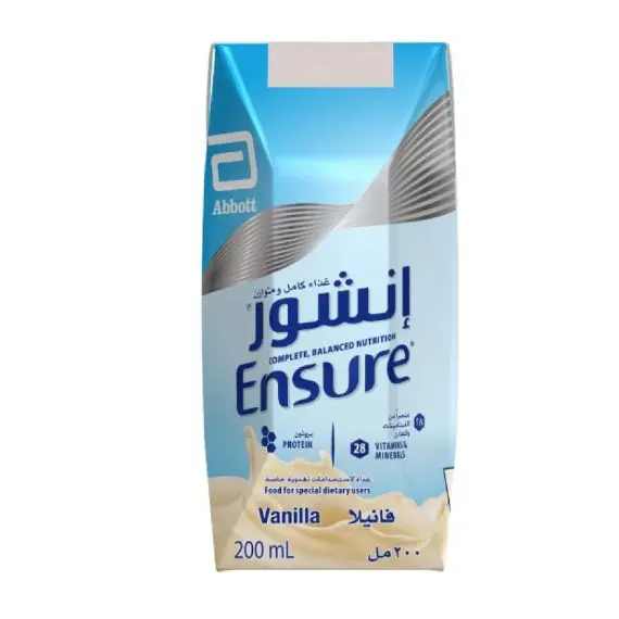 حليب إنشور مكمل غذائي ( Ensure 200ml ) الكرتون عبوة 18 حبة