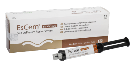 EsCem is dual-cured self-adhesive resin cement. It contains MDP, an adhesive monomer, to