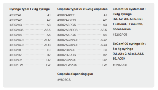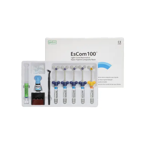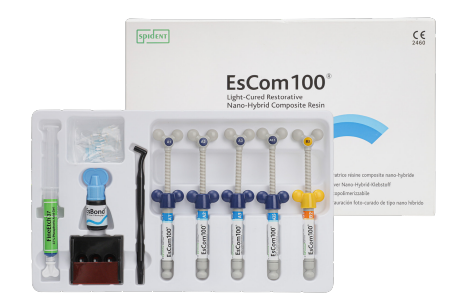 EsCom100 is light-cured restorative hybrid composite resin for posterior and anterior restorations.