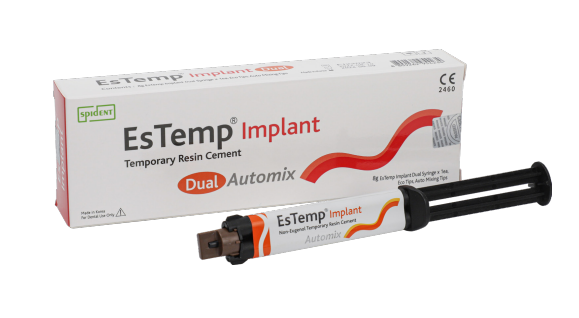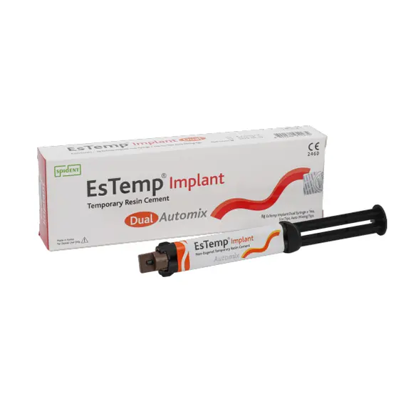 EsTemp Implant is non-eugenol, dual-cured temporary resin cement for luting implantretained crowns. It has excellent strength and durability, which allow long-term cementation. It
