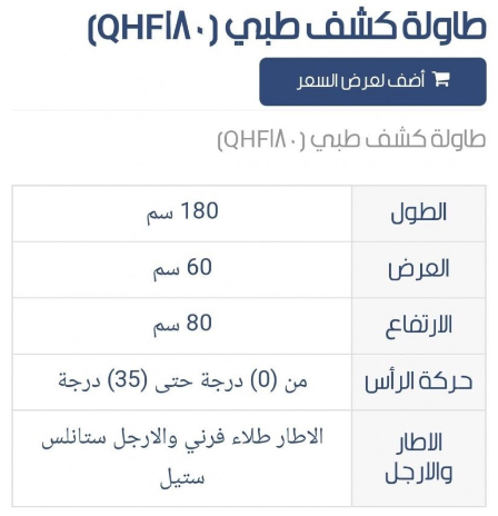 - طاولة كشف مريض مزودة بمسند ظهر قابل للتعديل بزاوية حادة للحصول على وضعية اكثر راحة للمريض