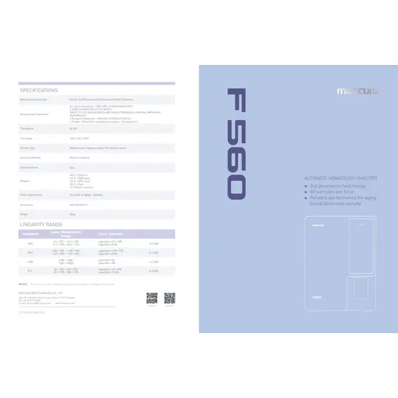F 560 Automatic Hematology Analyzer combines core technology with a compact frame. Superior performance and whole course quality management can fully meet the requirements of clinical labs.