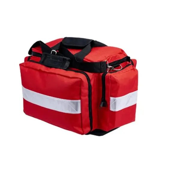 - حقيبة المسعف الأول حمراء فارغة شبة صلبة بمقبض مع حزام كتف.