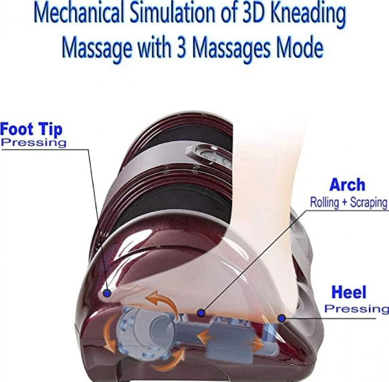 It has cylinders with heads to massage the heel, soles of the feet and the entire foot.