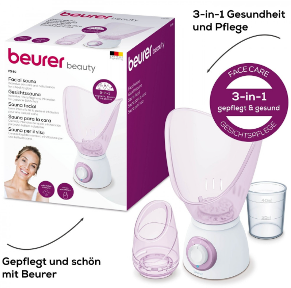 بيورير جهاز حمام بخار للوجه fs60:تنظيف بسيط. للعناية بالبشرة والاستنشاق .ملحقات للرعاية التجميلية بالوجه.