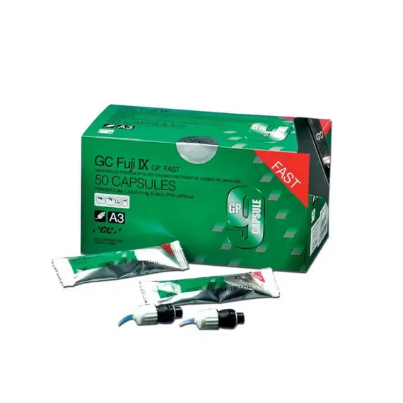 Characteristics & benefits • Easy-to-use packable posterior glass ionomer with high wear resistance • No need for rubber dam • Intrinsic adhesion to dentine and enamel, without the need for etching and bonding • Can be used with metal matrices for easy contouring • Single step placement • Good radiopacity, facilitating postoperative diagnosis • Excellent biocompatibility Specific features of GC Fuji IX GP FAST: • Shorter setting time with final finishing only 3 min. after start of mix • Thicker consistency for easy packing • Stronger for improved longevity