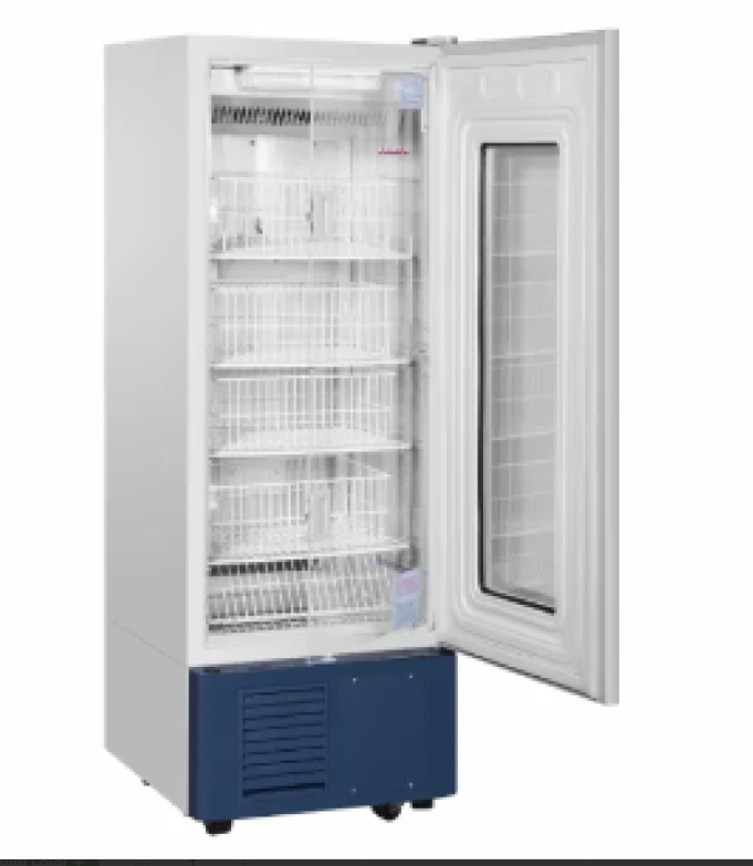 The refrigerator features adjustable shelves. These shelves can be adjusted to any height to meet various requirements. Users can customize the shelves according to blood storage, optimizing space utilization, and different types of blood can be stored in separate baskets. The door is condensation-free at room temperature (32°C) and 80% humidity. It is a glass door with electric heating, also condensation-free at 80% humidity.