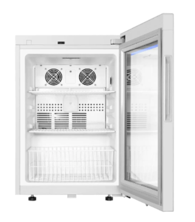 Product features: Reversible door hinge for user-friendly operation; Excellent performance: Uniform temperature ≤ ± 1°C; Tested by TUV according to DIN13277 Quiet operation: 35 dB(A) Intelligent anti-condensation: Triple tempered glass door with door frame heater, effectively reduces condensation even at 32°C, ambient temperature 80% relative humidity. Optional USB and RS485,Easy to export temperature data; positive magnetic sea gasket; multiple alarms for safer monitoring; hermetically sealed compressor, forced air circulation, and automatic defrost ensure high cooling performance.
