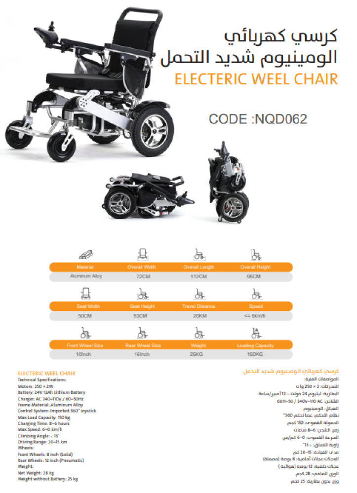 Heavy-duty aluminum electric wheelchair, model NQD062