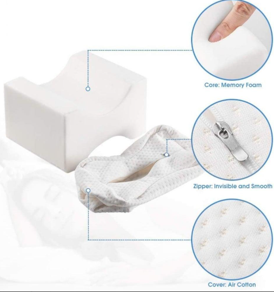 - High-density memory foam knee pillow: Made from 100% high-quality memory foam for long-lasting comfort while you sleep. Our orthopedic leg pillow is durable, maintains its shape, and won't flatten over time. It also features a hypoallergenic, breathable, zippered cover that is machine washable for easy cleaning and doesn't retain heat.