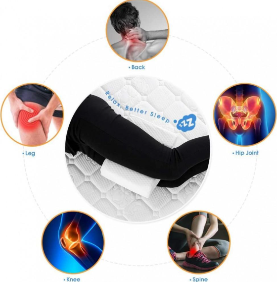 - Relief from back, sciatic nerve, knee and hip pain: Are you tired of tossing and turning at night, having trouble sleeping due to body aches and pains, or just want a restful sleep? The orthopedic leg pillow fits comfortably between your knees and allows your leg muscles to fully relax while you sleep, helping you relieve back, knee, sciatic nerve, leg, hip and joint pain.