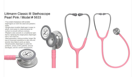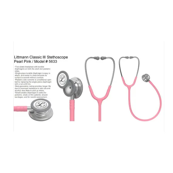 سماعة طبيب عالية الجودة بتصميم عصري وأنيق وألوان متعددة. السماعة حساسة للأصوات الطبيعية وغير الطبيعية. يستخدم السماعة الأطباء من جميع التخصصات مثل القلبية والباطنية والأطفال. تصميم بخاصية الاستماع من الوجهين للاستخدام مع البالغين والأطفال. سدادات الأذن ناعمة ومريحة عند الاستخدام المتكرر. سماعات بتصميم أمريكي، خالية من اللاتكس. تتوفر بعدة الوان وزن السماعة: 82 جرام. قطر وجه السماعة الأكبر: 4.3 سم. قطر وجه السماعة الأصغر: 3.4 سم. العلامة التجارية: 3M.