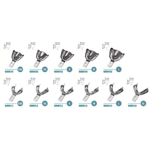 IMPRESSION TRAYS, STAINLESS STEEL, EDENTULOUS, SET/11 6009/SET