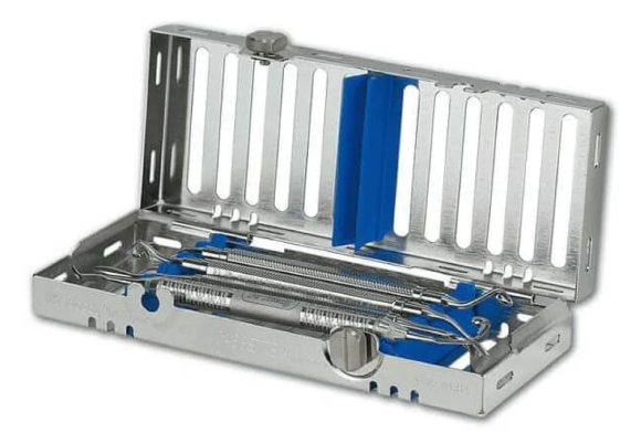 IMS Cassette Signature 1/4 DIN5 Instruments, Red (Empty Cassette). Used for safe and organized storage of dental instruments, protecting them during sterilization and transport.