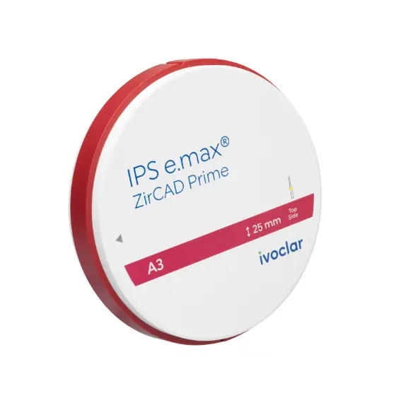 IPS e.max ZirCAD provides a versatile range of zirconium oxide materials for labside CAD/CAM applications. It is used for the fabrication of frameworks and full-contour crowns and bridges. High strength, thin wall thickness and high esthetics are among its hallmarks. IPS e.max ZirCAD Prime is redefining all-ceramics. This revolutionary material is characterized by exceptional quality and esthetics. The product is suitable for any indication – from single crowns to multiple-unit bridges and accommodates all processing techniques. After dry milling in a PrograMill CAD/CAM machine, the non-shaded restorations can be optionally infiltrated with colouring liquids. IPS e.max ZirCAD is sintered in a e.g. Programat S2 sinter furnace and finished with IPS Ivocolor and/or IPS e.max Ceram for final characterization.