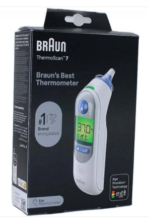 - ميزان حرارة الكتروني لقياس درجة حرارة الجسم عن طريق الأذن.