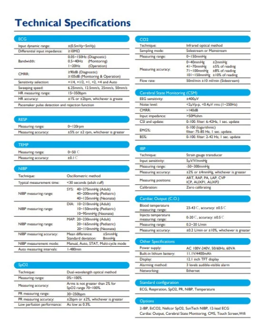 مواصفات جهاز مراقبة المريض K 12: