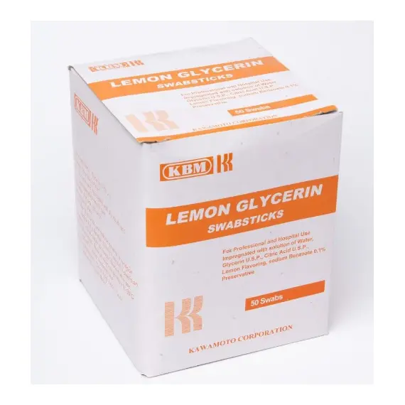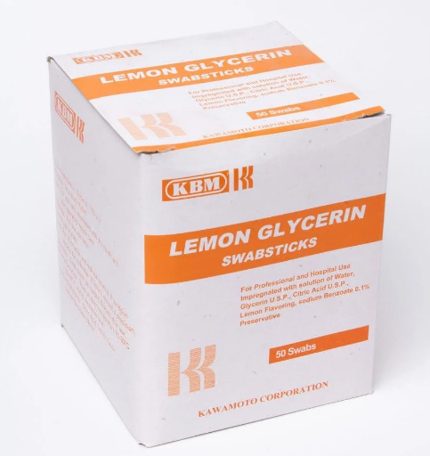 Mouthwash sponges with glycerin and lemon flavor, soaked in a 0.1% water solution of citric acid and sodium benzoate.