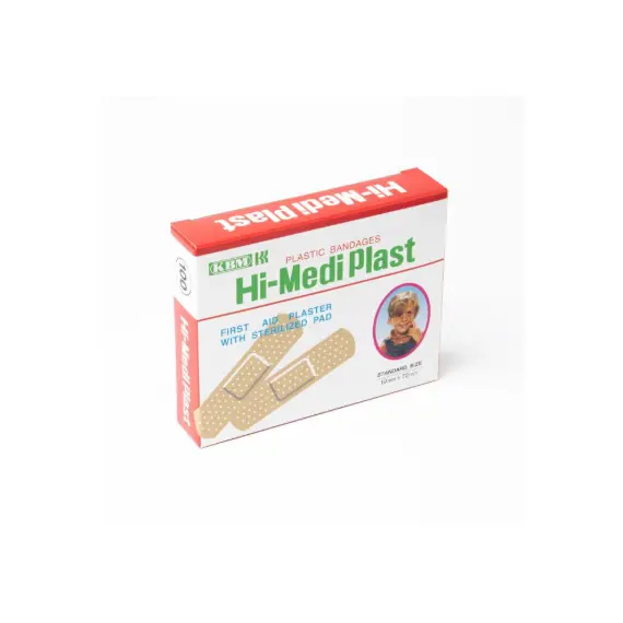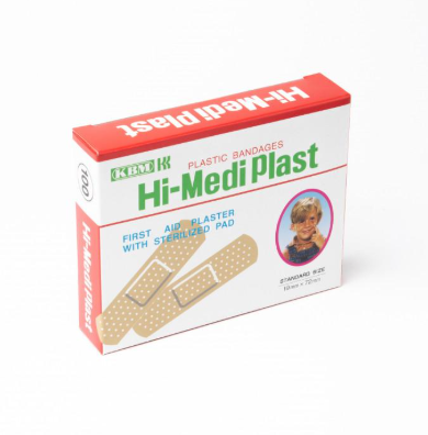 KBM Japanese high-quality wound plasters, come in packs of 100 rectangular pieces.