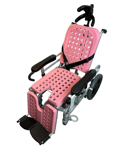 - This chair helps companions transport bedridden patients with ease and provides them with comfort while bathing. The chair can be converted into a bed using the remote, by folding the back and raising the feet. This provides a comfortable and safe position for patients during bathing.