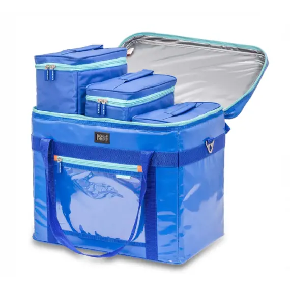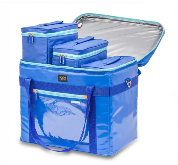 - حقيبة كبيرة حافظة للبرودة بداخلها أربع حقائب حافظة للبرودة (ثلاثة رأسية وواحدة أفقية).