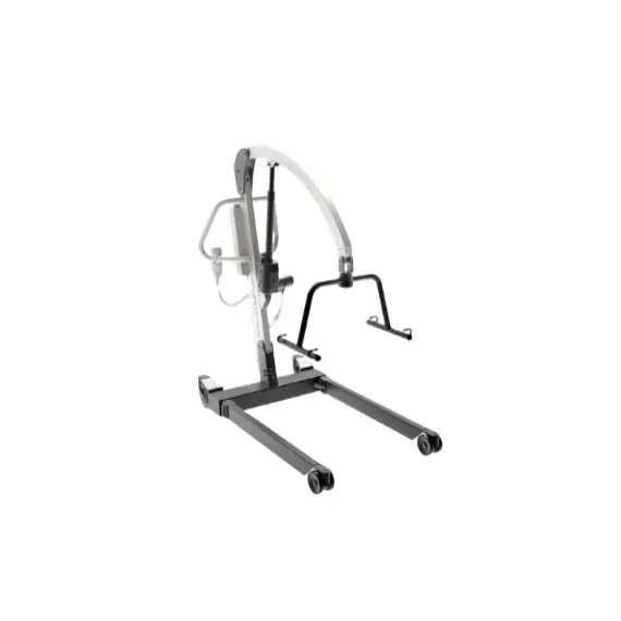 Sit-to-stand lifts (stand assist lifts) are designed for patients who have difficulty standing up on their own from a seated position and is used to transfer a patient between seated surfaces. Made to support only the upper body of the patient. Requires the ability to support the majority of his weight while standing and control of his upper body and head functions. The user is lifted up while both feet remain on a secure platform and knees are placed against a special pad to facilitate safe positioning. It raises the patient to a partial or full standing position. This type of lift is ideal for transfers to toilet, bed, commode or chair. Full body patient floor lifts are dedicated to patients who are temporarily or permanently unable to stand without assistance. Used to transfer them from bed to chair, wheelchair, chair as well as from the floor in case of falls. These lifts are also used when transferring a patient from room to room (under appropriate conditions - only on horizontal flat surfaces).