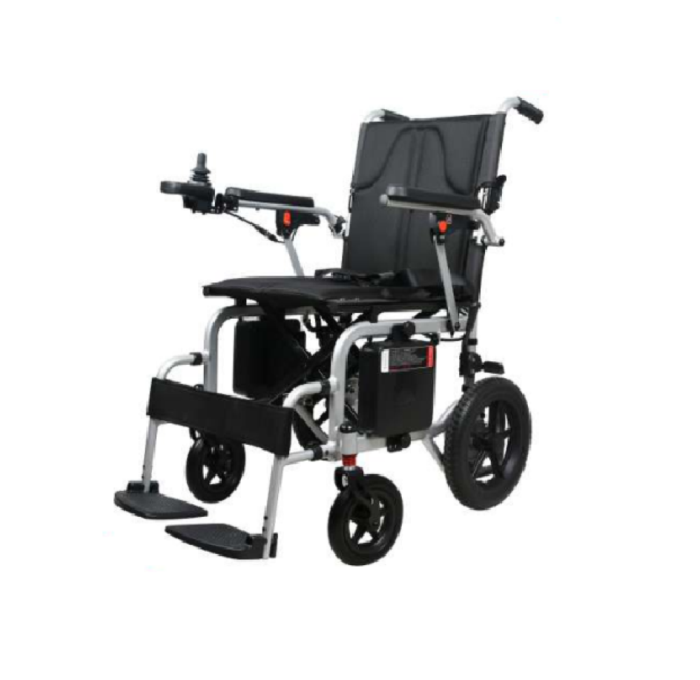 The DH01123LA electric wheelchair, made of lightweight aluminum, is easy to transport and handle, making it an ideal choice for daily commuting both indoors and outdoors. It features a quiet electric motor, a rechargeable battery, and easy hand controls. Its ergonomic, foldable design is suitable for seniors and people with disabilities.