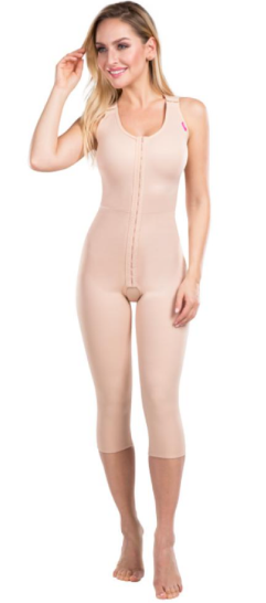 A sleeveless full body garment for women after surgery with adjustable straps that covers the entire torso from the shoulders and extends to below the knees. Suitable for use after abdominoplasty, tummy tuck, DIEP flap, liposuction of the abdomen, back, pelvic area, buttocks, hips, flanks, and thighs, as well as breast surgeries (i.e. breast augmentation, breast reduction, breast reconstruction, breast lift, breast lift, and breast augmentation)