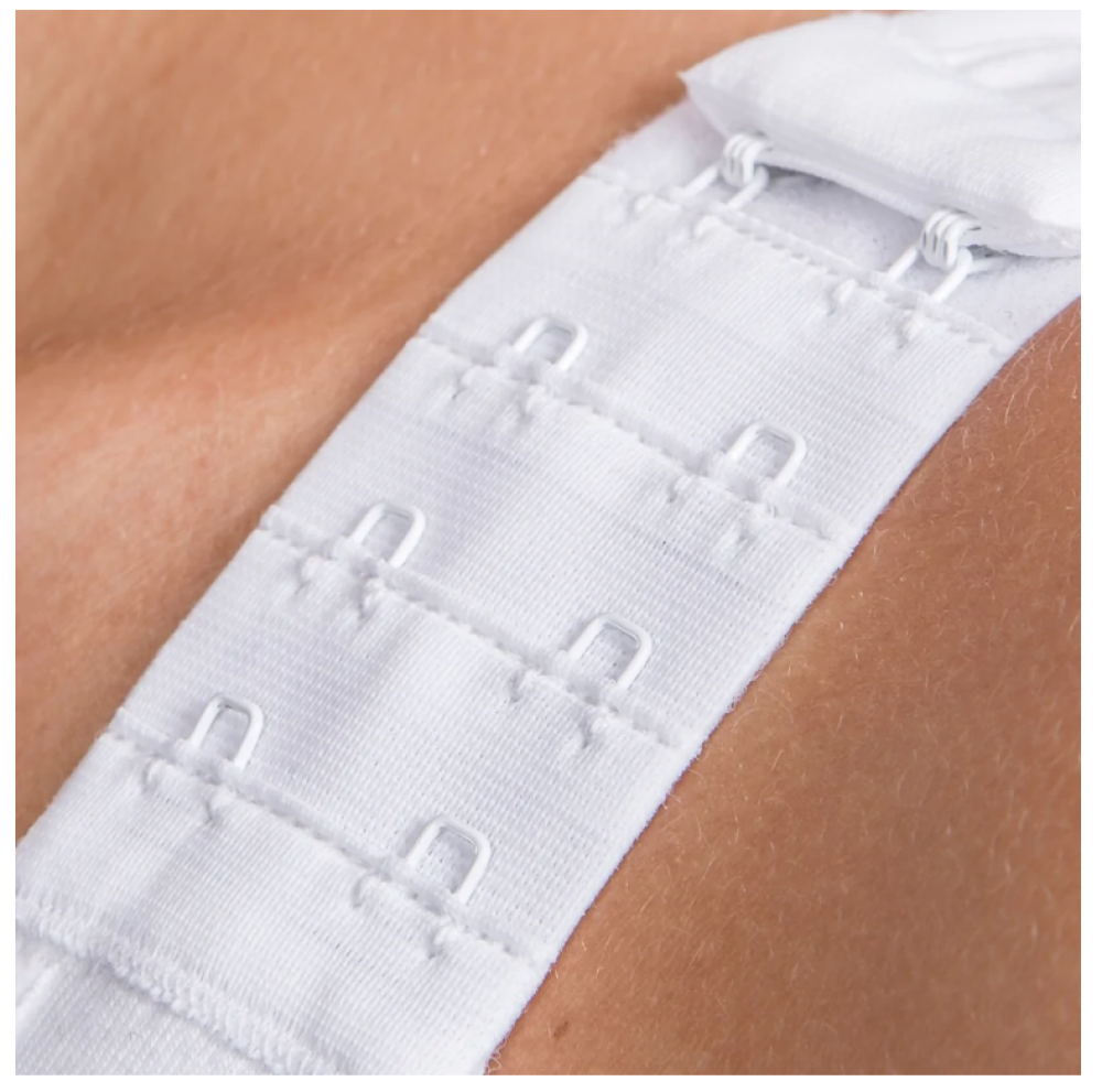 - تتميز حمالة الصدر بشريط مطاطي عريض أسفل الصدر يمنع حمالة الصدر من الاحتكاك أو الالتفاف بأي شكل من الأشكال. تم تصميم الشريط ليكون ناعمًا للغاية بحيث يبدو وكأنه استمرار لحمالة الصدر نفسها وبالتالي لا يتداخل مع الأنسجة الندبية