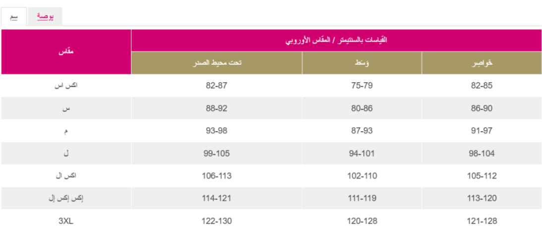 - تنتهي الملابس الضاغطة أسفل الصدر بشريط مطاطي عريض يمنع الملابس من الاحتكاك أو الالتفاف
