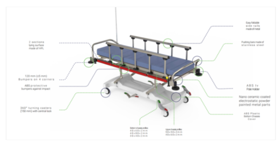 مواصفات نقالة مريض هيدروليكية M2-T300 ميديكال 2000 صناعة تركية: