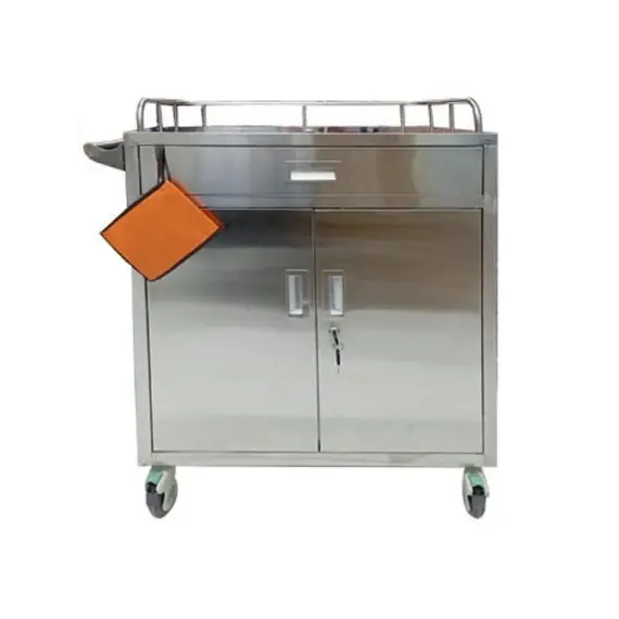 Medical Cabinet - S.S304 Dressing Trolley - Wheels & Push Handle Big