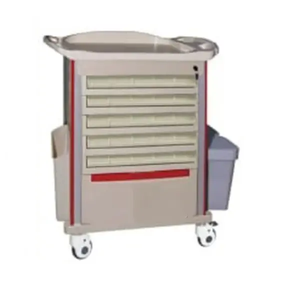 - The trolley helps organize medical supplies and materials effectively, making them easily accessible when needed.
