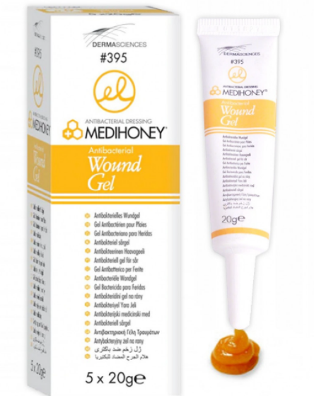 • عبارة عن عسل طبي يعمل على التقليل من الإصابة والشعور بالألم الناتجين عن تغيير الضمادات .