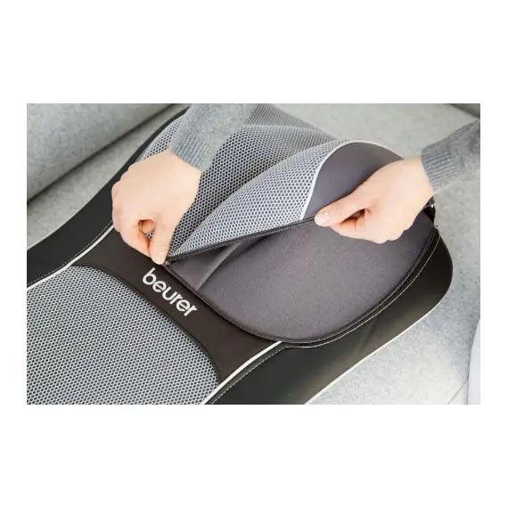 Enjoy complete relaxation at home with the Beurer MG 295 HD 3D Shiatsu Massage Seat Cover in black. This seat cover brings a sense of comfort and luxury to your home. It features four Shiatsu massage heads with 3D vibration technology and two rotating neck massage heads, providing a relaxing and soothing massage experience.