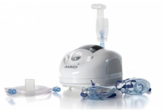 MIKO is a piston-operated nebulizer for spray therapy. Designed for home use, it features a compact size and comes with a carrying case for easy transport of the unit, accessories, and medications. It has recently been upgraded to operate continuously when intensive treatments are required. HI-FLO Jet Nebulizer, Adult Masks with Elastic Strings, Pediatric Masks with Elastic Strings, Mouthpiece, Nosepiece (Non-Surgical), Air Tube, Air Filter, Carrying Case (Miko Model Only), Compressor - Oil-Free, Maintenance-Free Piston Pump, Power Supply - 230V - 50Hz, Power Consumption - 170VA, Maximum Pressure - 2.2 bar 32 psi 220 kPa, Operating Pressure - 0.95 bar 12 psi 80 kPa, Operating Airflow - 4.8 L/min, Breathing Rate with 4 mL Solution - 0.35 mL/min, Average Aerodynamic Diameter (MMAD) - 2.44 µm (mmA), Inhalable Fraction (80%), Warranty - 3 Years, Place of Manufacture - Italy