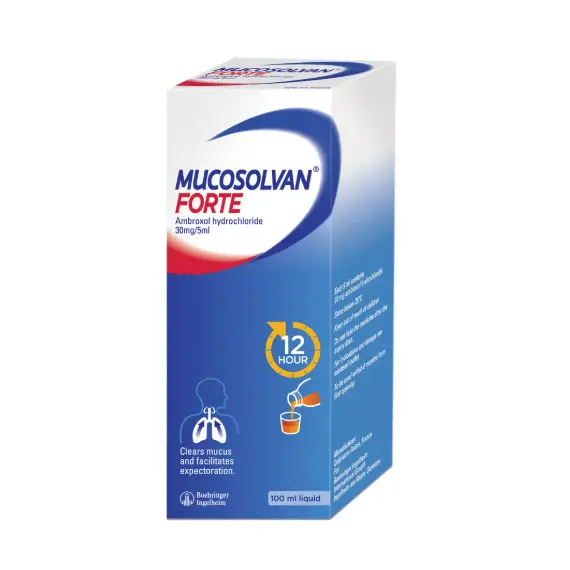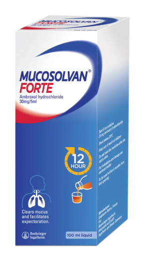Mucosolvan® Forte is a cough syrup that provides an effective 12-hour solution for a wet cough in adults and children above two years old. It has a trusted formulation of Ambroxol hydrochloride with a three-way action that loosens the phlegm, clears the airways, and, protects against new mucus forming.