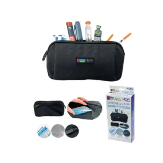 A daily activity bag designed to keep insulin, other biologics, and hormones safe. *Made of a heat-insulating barrier and an ice pack to protect insulin and other biologics from damage. *Comfortable, non-slip zippered handle. *Advanced thermal insulation for long-lasting coldness. *A gel pack inside the case can be used to maintain constant temperature reduction.