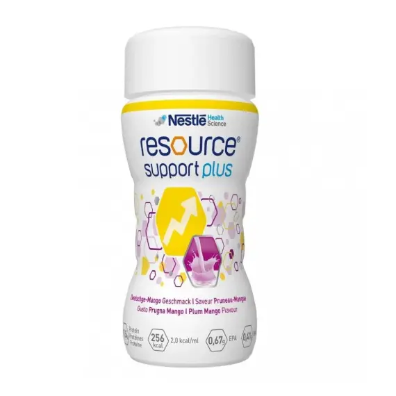 Resource® Support Plus هو النظام الغذائي الوحيد الكامل لفرط السعرات الحرارية 2.0 وفرط البروتين ، مع W3 (EPA) خصيصا للمريض الذي يعاني من سوء التغذية. الميزات والفوائد - زائد في الطاقة مع تركيز أقصى 2.0 في 125 مل - زائد في البروتين: 100٪ بروتين الحليب من قيمة بيولوجية عالية - زائد في الخصوصية مع صيغة غنية في W3 (EPA) - يقلل من هدم الدهون والبروتين - يقلل من إنتاج السيتوكينات المؤيدة للالتهابات والمخبأة A Plus وفقا لما يلي: - حجم لا يقل عن 125 مل لتسهيل المبادئ التوجيهية الغذائية - مجموعة متنوعة من نكهات نستله (Multifruit ، الخوخ والفانيليا الخفيفة) براعة مع نكهة الفانيليا الخفيفة التي تسمح بإضافة مسحوق الكاكاو والقهوة القابلة للذوبان وما إلى ذلك ...، للتكيف مع تفضيلات المريض المؤشرات العلاج الغذائي للمرضى الذين يعانون من فقدان الوزن اللاإرادي و / أو فقدان كتلة العضلات الجرعة اليومية الموصى بها (وفقا للمعايير الطبية) كمكمل: 3 زجاجات من 125 مل يوميا كنظام غذائي حصري: اعتمادا على الاحتياجات الغذائية للمريض.