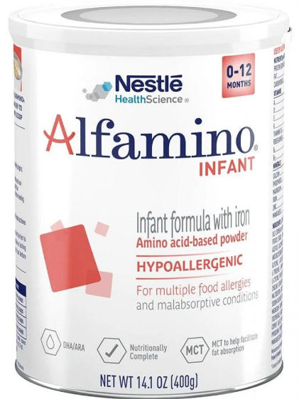 - تركيبة كاملة من الناحية التغذوية ، لا تسبب الحساسية ، أساسها الأحماض الأمينية للرضع من عمر 0 إلى 12 شهرًا