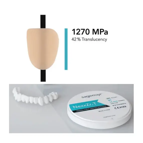 NexxZr T is a dental zirconium oxide (3Y-TZP) with very high flexural strength (1270 MPa) and medium translucency (42 %).