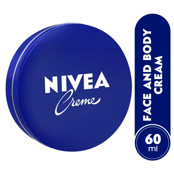 60 MlAre you looking for intensive protective care? Look no further, Nivea Creme is the world’s No. 1 skin care cream!Nivea Creme – the original moisturizer for the whole family, is a rich and deeply nourishing creme that provides your skin with all the protective care it needs to stay pure, fresh and smooth.Enriched with Eucerit - a special moisturizing ingredient rich in lipids and panthenol, Nivea Creme supports the skin’s regenerative qualities, and can have a soothing, calming effect on very dry skin and even small wounds. It is suitable for all skins types and can be used on the face, body and hands.Nivea Creme has a unique mild formula that is free from color, paraben and preservatives, therefore, perfectly suitable for use on children’s delicate skin and ideal for young skin.Nivea, a hundred years of skincare for life!MOISTURIZING TECHNOLOGY: thick and rich formula with the skin related Eucerit, Panthenol and GlycerinFOR DAILY USE: mild formula ideal to be used all over the face, hands and body, especially on rough spots such as knees, feet, elbows and handsRESULT: intensive moisturization, smooth and soft skin, nutrition and protection against rough and dry feelPRESERVATIVE-FREE: free from preservatives and suitable for children's skinDERMATOLOGICALLY APPROVED: creamy moisturizer dermatologically tested and approved for all skin typesAqua, Paraffinum Liquidum, Cera Microcristallina, Glycerin, Lanolin Alcohol (Eucerit®), Paraffin, Panthenol, Magnesium Sulfate, Decyl Oleate, Octyldodecanol, Aluminum Stearates, Citric Acid, Magnesium Stearate, Limonene, Geraniol, Hydroxycitronellal, Linalool, Citronellol, Benzyl Benzoate, Cinnamyl Alcohol, Parfum.60 Ml