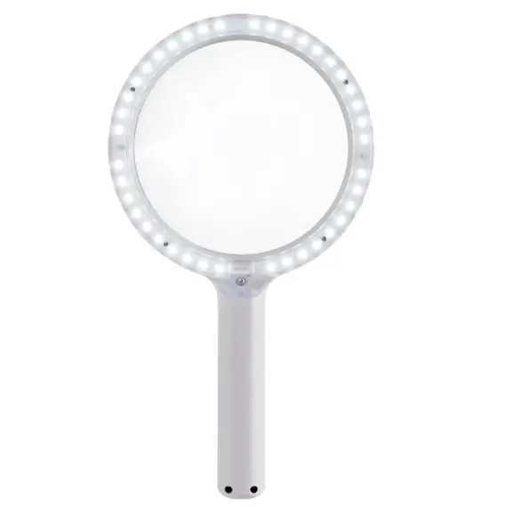 6500K - 1.9X (3.5 diopter) magnification lens surrounded by premium LEDs - Oversized 6.3" hard acrylic magnifying lens specially treated with a protective lens hood. Continuous dimming from 100% to 10% - Color rendering characteristics: CRI > 93, R9 > 90, R13 > 95
