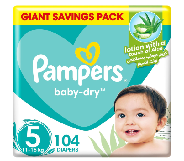 - NO RASH WITH ALOE VERA LOTION: Pampers Baby-Dry Taped Diapers are infused with aloe vera lotion to help protect your little one’s soft skin against rashes by keeping it well-hydrated and perfectly dry. Keep a Pampers size 5 giant pack handy to ensure a rash-free day for your baby’s skin anytime during the day.