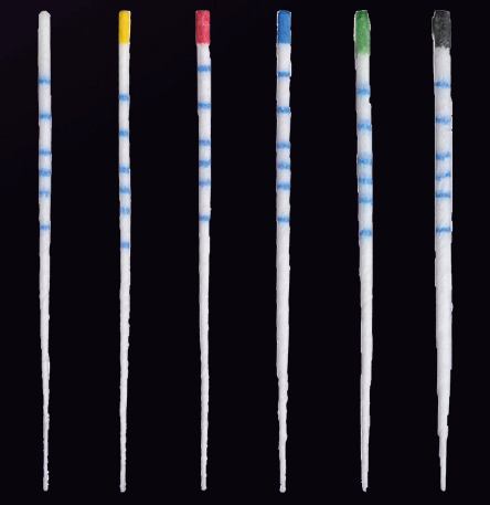 High-quality absorbent paper points used for drying root canals after cleaning and irrigation.