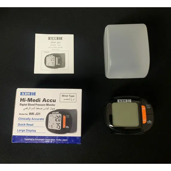 Electronic Wrist Blood Pressure Monitor. Used for easy and accurate blood pressure measurement at home or in clinics, providing quick and clear readings on a digital display. Features memory storage to track measurements, designed for comfort and ease of use.