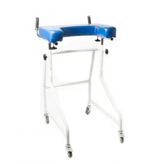 مشاية قائمة مع ساند للذراعين مكون من سطح من الجلد بحشوة إسفنجية لتوفر الراحة للمريض وتستخدم في حالات متعددة مثل ضمور وضعف عضلات القدم أو الساق و إختلال التوازن الحركي ليتمكن المريض من ممارسة العديد من الانشطة براحة وامان .