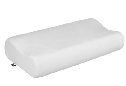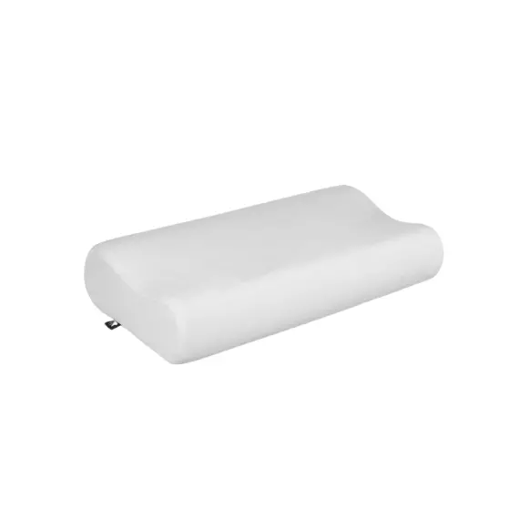 A medical pillow made of high-quality memory foam, with an inner cover of cotton and an outer cover of soft velvet, equipped with a zipper for easy washing of the outer cover, and two sides of different heights.